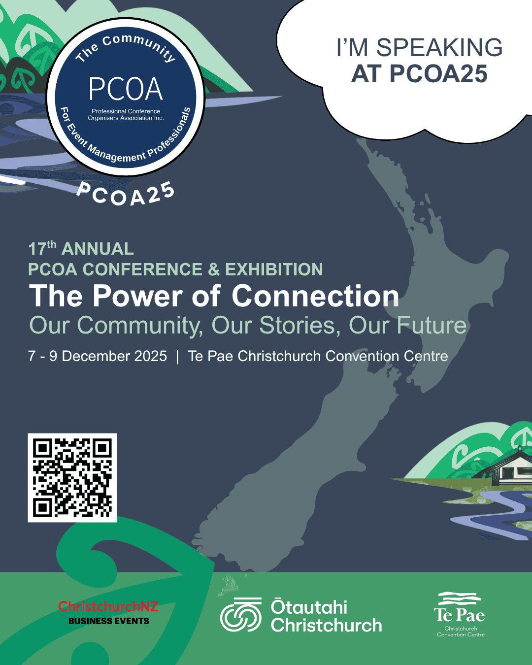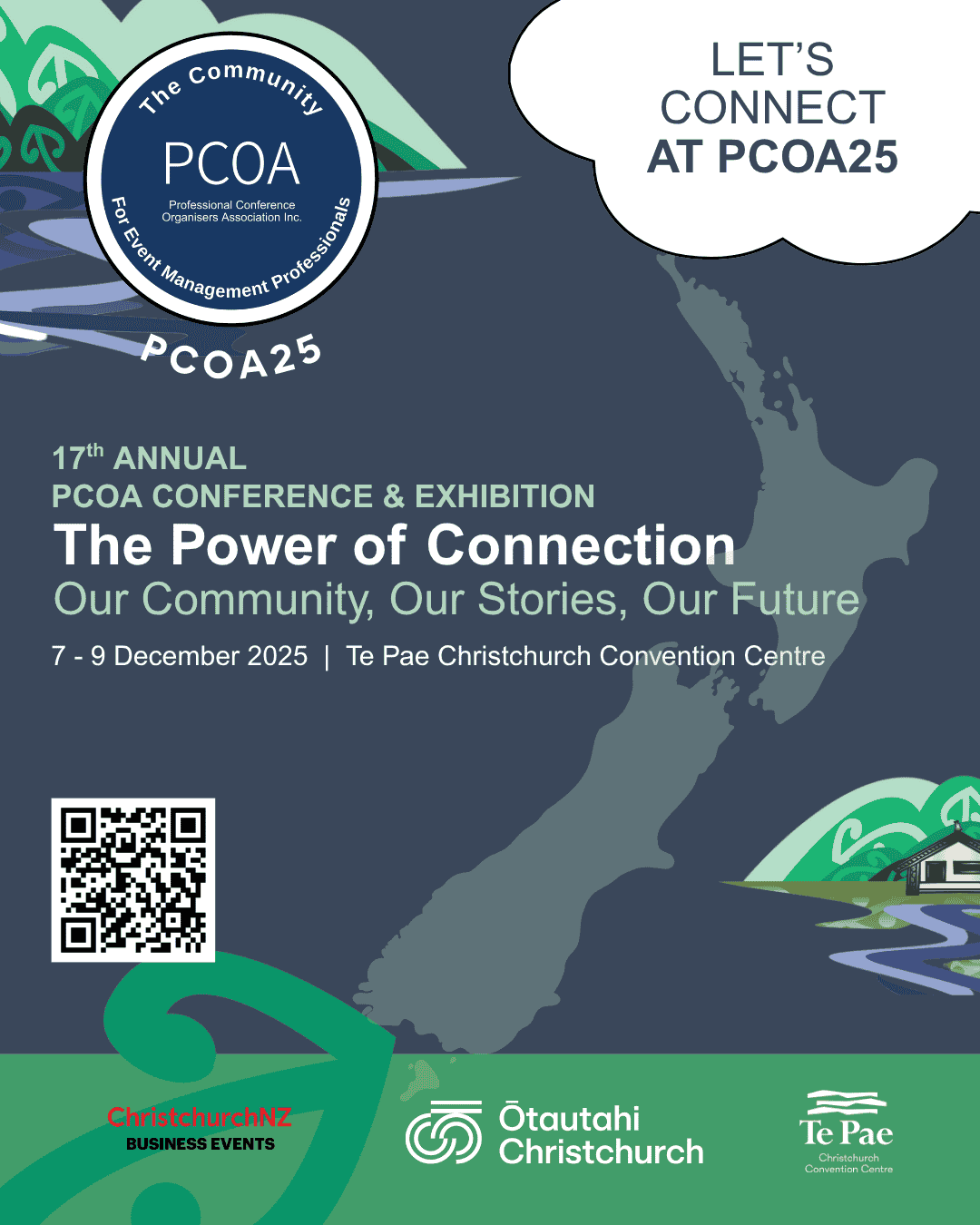 A karakia is a short Māori prayer or blessing used to open or close an event, helping to set the tone and bring people together. It acknowledges the space, the people, and the purpose of the gathering. This karakia has been selected by Liz Kereru (Ngāi Tūāhuriri) to align to the 2025 PCOA conference theme of connection and community.